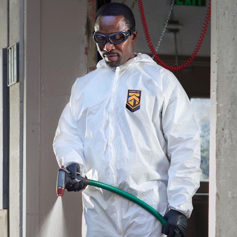 - These Kleenguard A45 Liquid and Particle Protection Hooded Coveralls for Surface Prep and Paint are made of microporous film laminate with a water-resistant zipper front and elastic wrists and ankles (EWA)