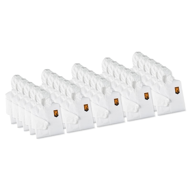 - 25 garments / case; Size Extra Large (XL); White; Hooded