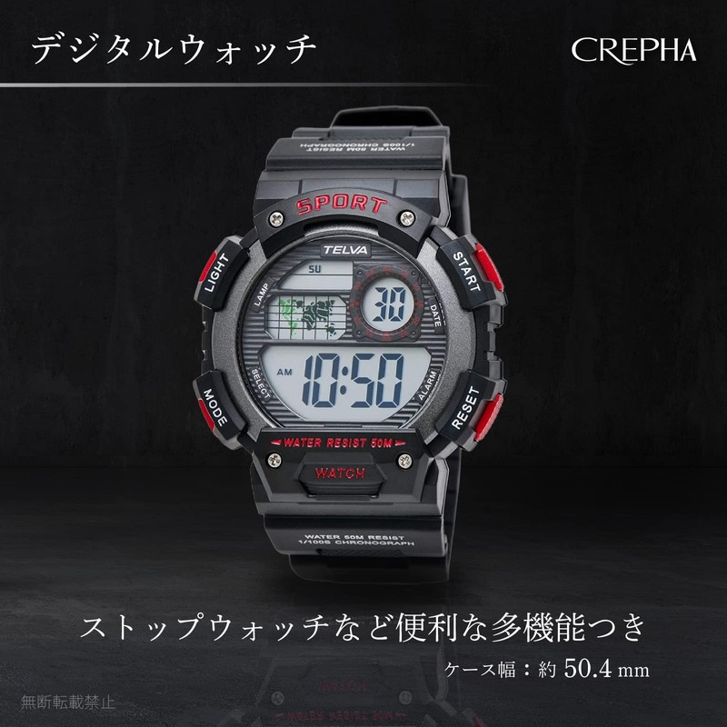 Klefer TED282 Men's Digital Wristwatch, Waterproof, Stopwatch Function, Urethane Strap, Black, red