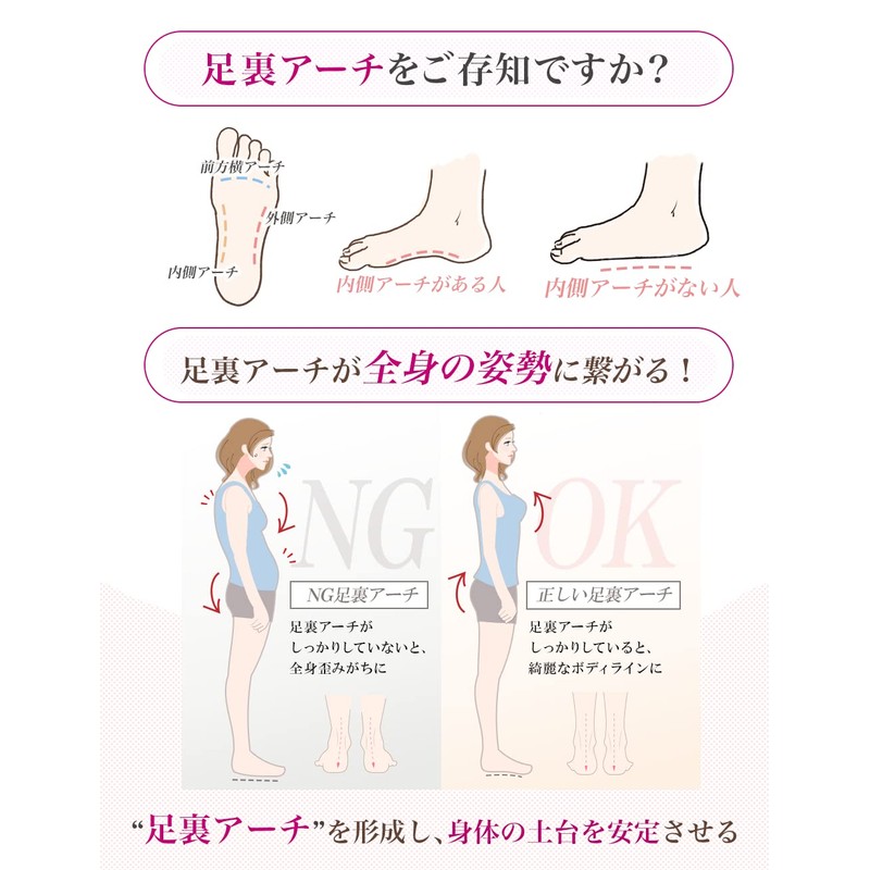 • 【足裏が全身の姿勢に繋がる】足裏アーチを形成し、身体の土台を安定させます