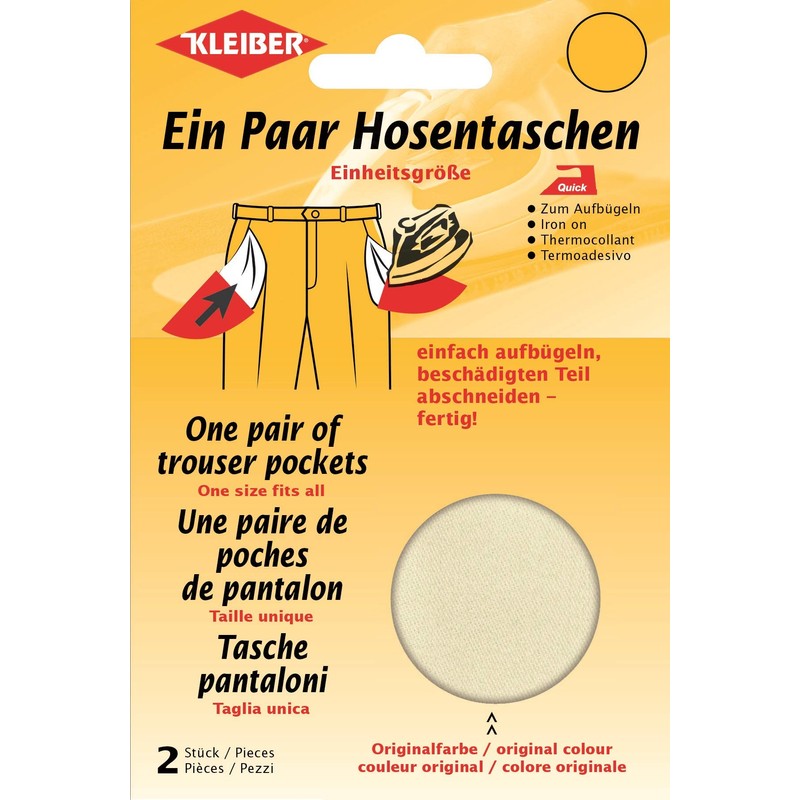 Kleiber Iron On Replacement Trouser Pockets-Beige-1 Pair, One Size