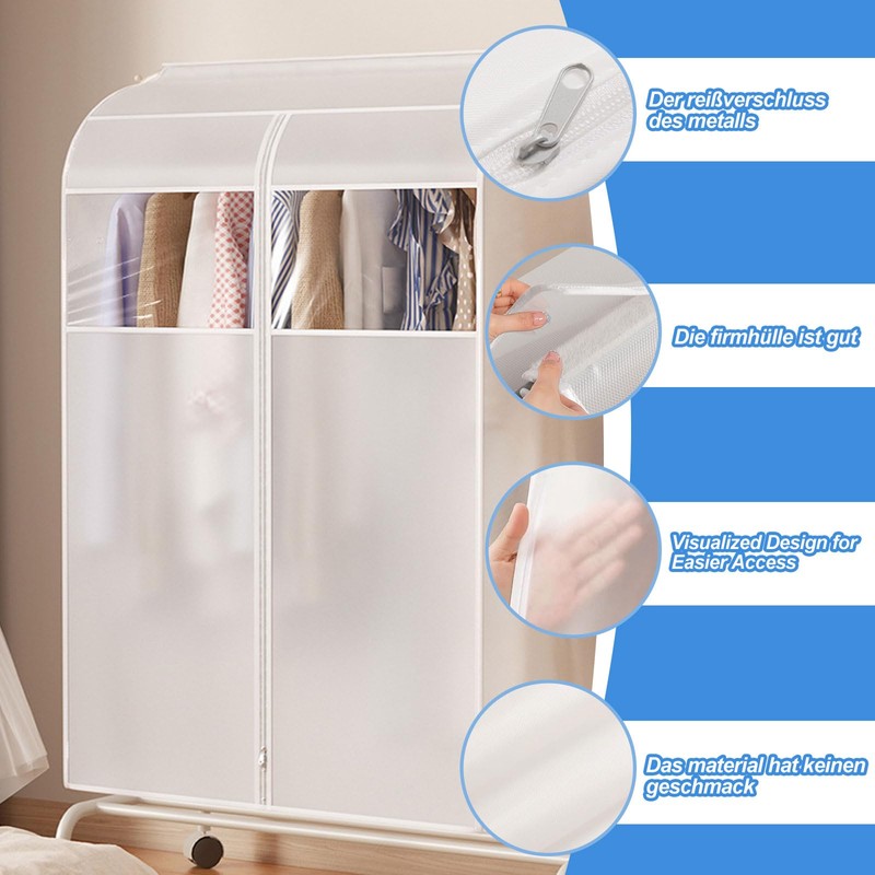 - 【Ideal für deutsche Haushalte】Diese Kleiderschutzhüllen sind speziell auf die Bedürfnisse deutscher Kunden abgestimmt: staubdicht, platzoptimiert und haushaltsfreundlich. Die Kleidersäcke mottensicher schützen vor Mottenbefall und bewahren die Frische Ihrer Kleidung. Ein praktisches Zubehör für jeden, der Wert auf ordentliche Kleiderhülle-Lösungen legt – ob für Alltag oder Langzeitlagerung.