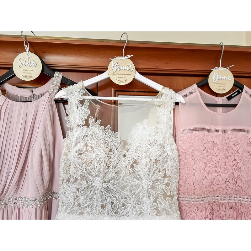 Kleiderbügel Anhänger Braut aus Holz personalisiert mit Name Hochzeitskleid (...