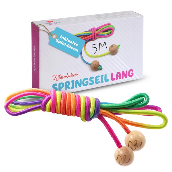 - Premium skipping rope: Are you looking for a skipping rope for children that combines sports and games? Then Kleintober skipping rope 5 m is ideal. Set contains a premium skipping rope long as well as game ideas. Skipping rope becomes an experience for children and parents