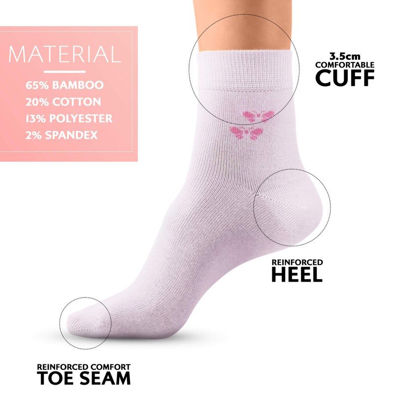- PACK OF 5 - Each of our packs contains 5 pairs of high quality ladies bamboo and cotton socks with different colors which is more than enough to fulfill your daily needs in a fashionable manner. They are the perfect fit for women with shoe size UK 4-8, EU 37-42, US 5-9. Model’s shoe size: UK 6
