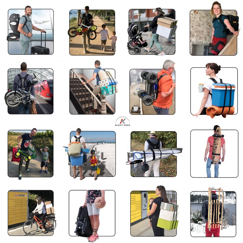 KLETTPACK® Back Carrying Strap for Packages, Hobby, Snowboard, Work & Holiday, Suitable for Large Bulky Shapes, Ergonomic, Back Gentle
