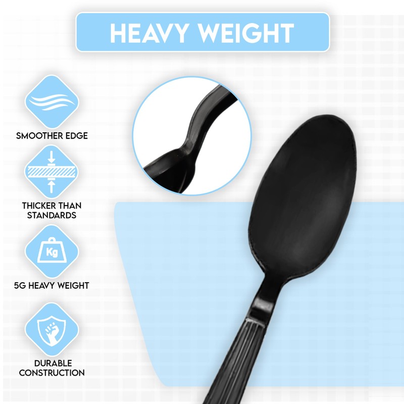 - 600 BULK VALUE PACK: Includes 600-count pack of 6.3-Inch disposable plastic spoons. Come in a classic black color. This bulk option ensures you have an abundant supply without the need for frequent restocking.