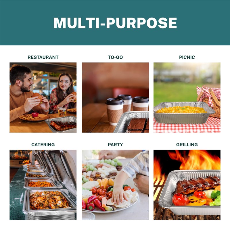 - ✅ VALUE PACK: This package includes full-size 100 aluminum pans, ensuring you have plenty on hand for meal prep, parties, catering, or everyday use. Enjoy easy cleanup with these disposable aluminum pans.