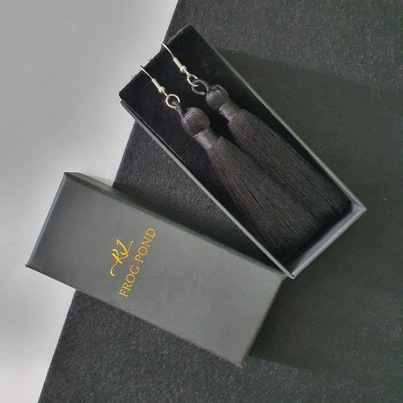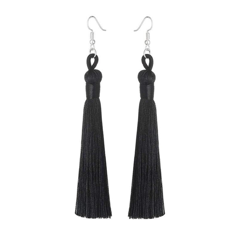 KLFrogPond Charms Boho Silk Thread Long Tassel Dangle Drop Fringe Earrings Fabric Vintage Eardrop (Black)