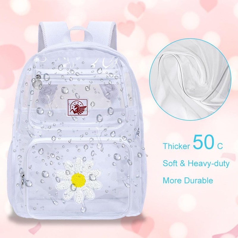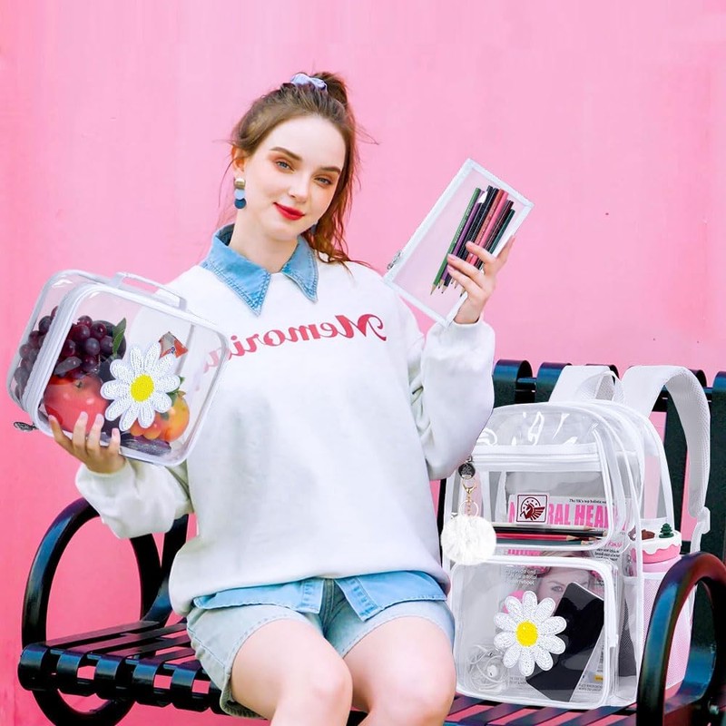 - Amazing 3PCS Clear Bookbag Set: Personalized flower sequins and vibrant embellishments are deeply loved by girls. A rich set for a richer life. This see through backpack is a great choice!