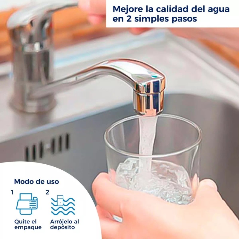 - Fácil de aplicar, solo quite el empaque y arrójelo en el depósito.