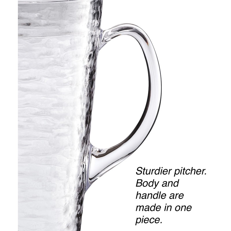 - UNIQUE DESIGN- Glass-like pitcher. Textured and foggy design on the external surface. Smooth internal surface and easy to clean. Ideal for restaurants and everyday use. Great for your favorite cold drinks, sangria, lemonade, fruit infused water, iced coffee, punch, and more.