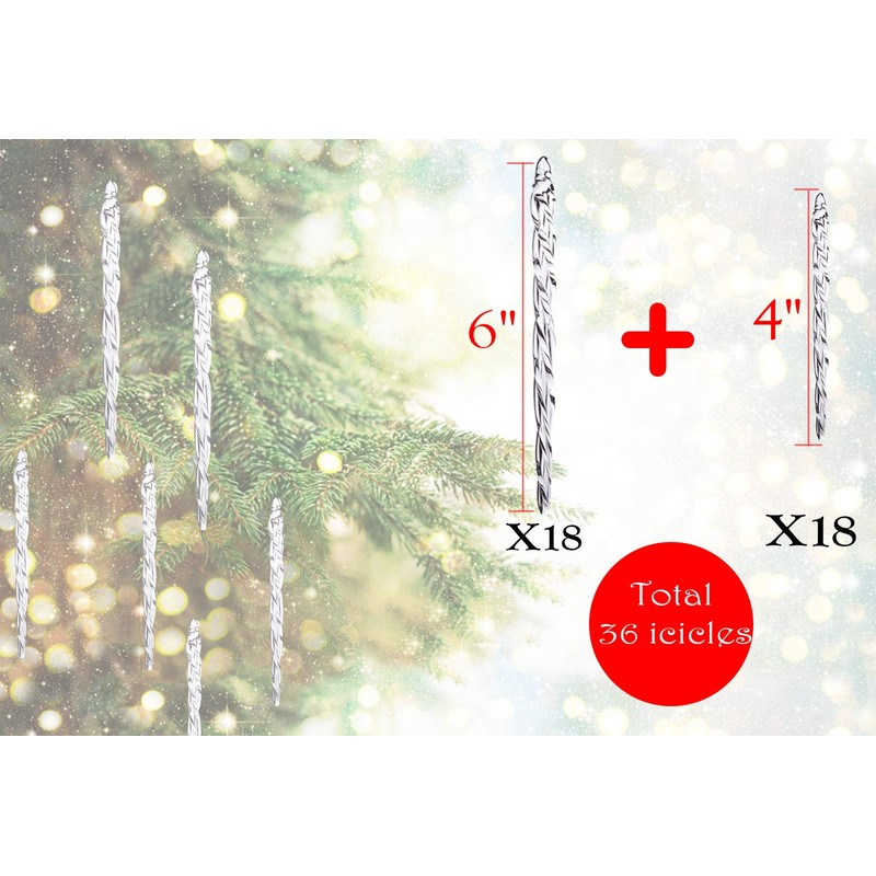 - DIFFERENT LENGTH ICICLES: These twisted icicles are sold in two different sizes for a realistic effect. 18 icicle sticks that are 4 long and 18 that are 6 long for a complete set of 36 winter icicles.