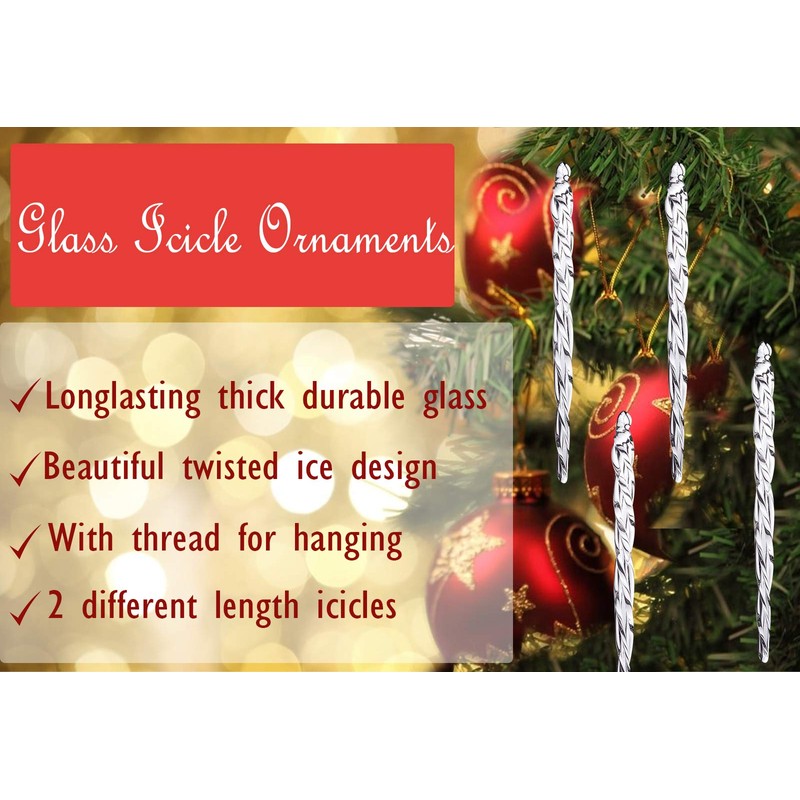 - BEAUTIFUL ICY DESIGN: The glass ornaments have a chic twisted design. Each icicle is ready to hang with a thin wire for you convenience