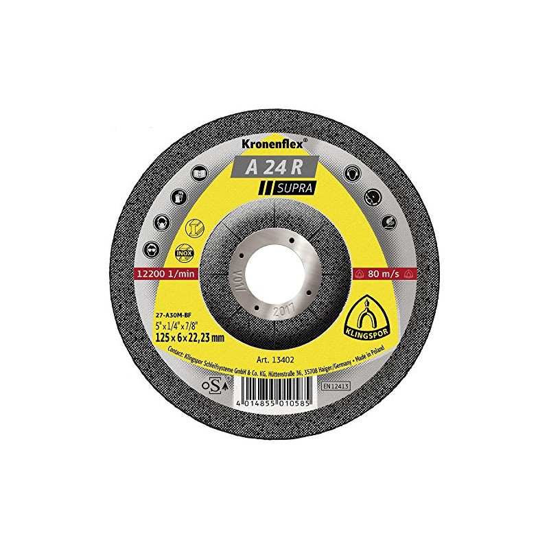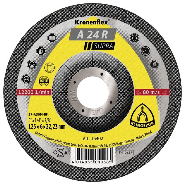 KLINGSPOR 13402A 13402 A 24 R grinding discs 125 x 6 x 22,23 mm cranked Contents: 1 piece
