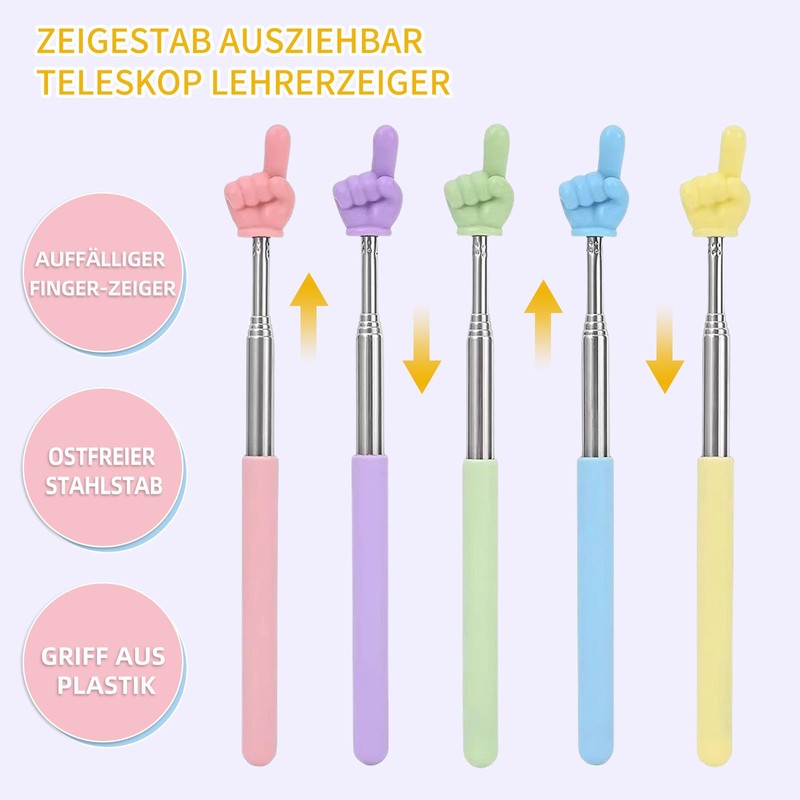 - Engaging and interactive learning: Increase attention in the classroom with this unique classroom finger pointing stick. The fun design as a pointer finger makes every hour more vibrant. Perfect as a children's extendable index finger rod suitable to convey learning content playfully and effectively and promote interaction.