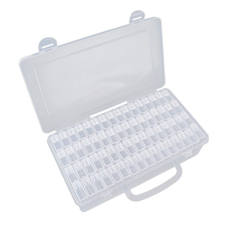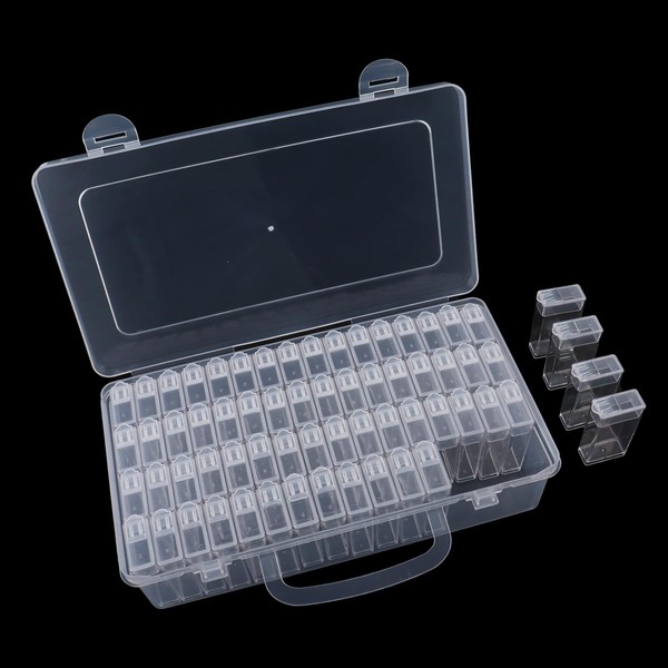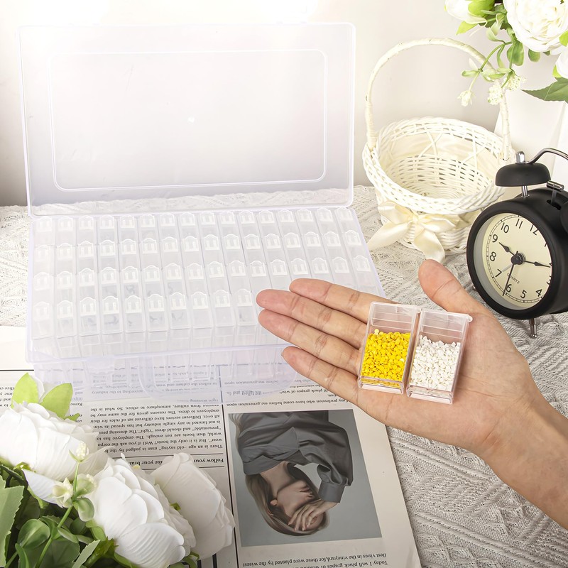 - Efficient Storage: A total of 2 diamond art storage boxes, each box includes 64 transparent individual containers with removable lids, double sealed dustproof, easy to view access, can store multi-coloured diamonds, nail supplies, seeds, etc., reduce clutter mention efficiency