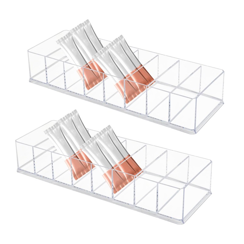 Klmnop 2 Pack Water Drink Packet Holder, Clear Plastic Drink Packet Organizer with 8 Compartments, Water Flavor Packet Organizer for Kitchen, Office(Clear)