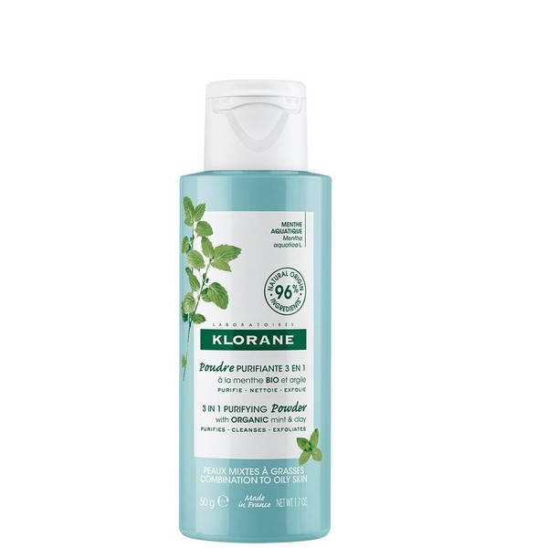 Klorane 3 in 1 Purifying Powder with Organic Mint and Clay 50g is a cleansing powder that transforms into a light foam to clean, purify and exfoliate the combination to oily skins, without drying them out.