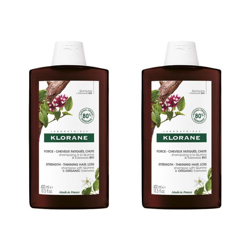 Klorane Shampoing à la Quinine et Edelweiss Bio, 2 x 400 ml