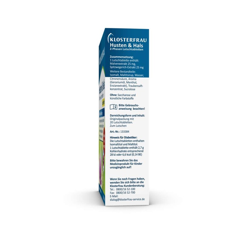 Klosterfrau Cough and Throat | 2-Phase Lozenges | Sugar-Free | With 4-Way Effect | Pack of 20