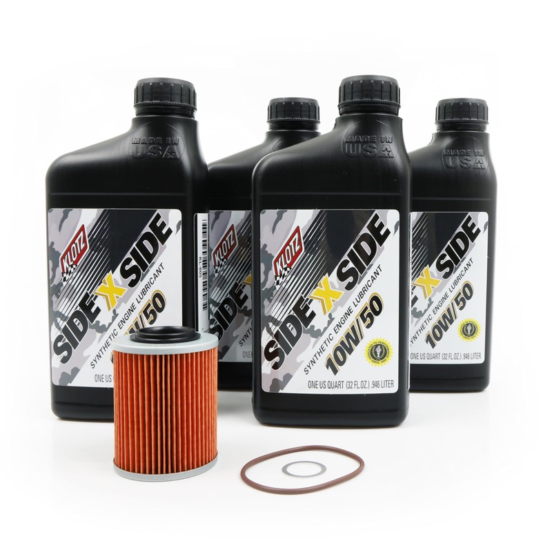 - Klotz KU-104 Can-Am Side-by-Side Oil Change Kit includes 4 Quarts of Multi-Viscosity Synthetic Engine Lubricant 10W-40, 1 Hiflofiltro Oil Filter (HF-152), and 1 Cometic O-Ring and Aluminum Washer – everything you need to get your wheels back on (or off!) the road.