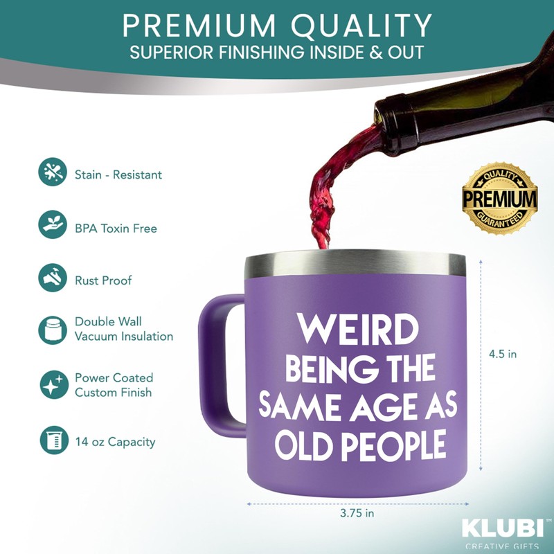 KLUBI Weird Being the Same Age as Old People 14oz Insulated Coffee Tumbler w/Lid and Straw, 40 Year Old Birthday Gifts for Women, 60th Birthday Gifts