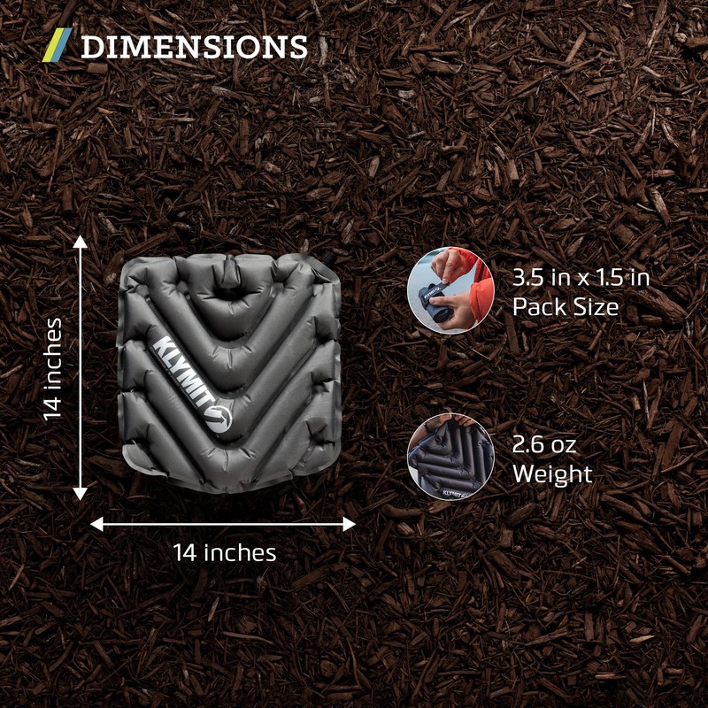 - Compact, Portable Seat Cushion: Our outdoor cushion easily compresses down to 3.5 by 1.5 inches, smaller than a lighter, when deflated, while providing 14 by 14 inches of cushion inflated; Throw this waterproof seat cushion into your backpack and go