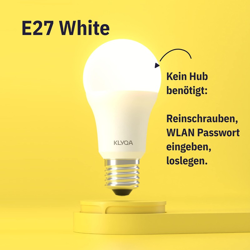 - Weiß & Smart - Die Klyqa E27 White bringt verschiedene Weißtöne in dein Smart Home. Dimmen oder ganz leicht den Weißton nach Geschmack anpassen.