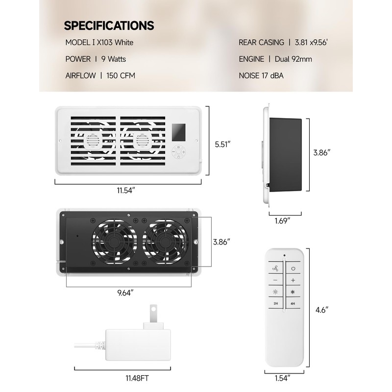- 【Powerful Performance, High-Efficiency Airflow】Equipped with dual 3600 RPM high-speed motors, this booster fan delivers up to 150 CFM of strong airflow, significantly enhancing your HVAC system’s circulation efficiency. Whether heating in winter or cooling in summer, it quickly and evenly distributes air, optimizing airflow from floor, ceiling, or wall vents for more balanced room temperatures.