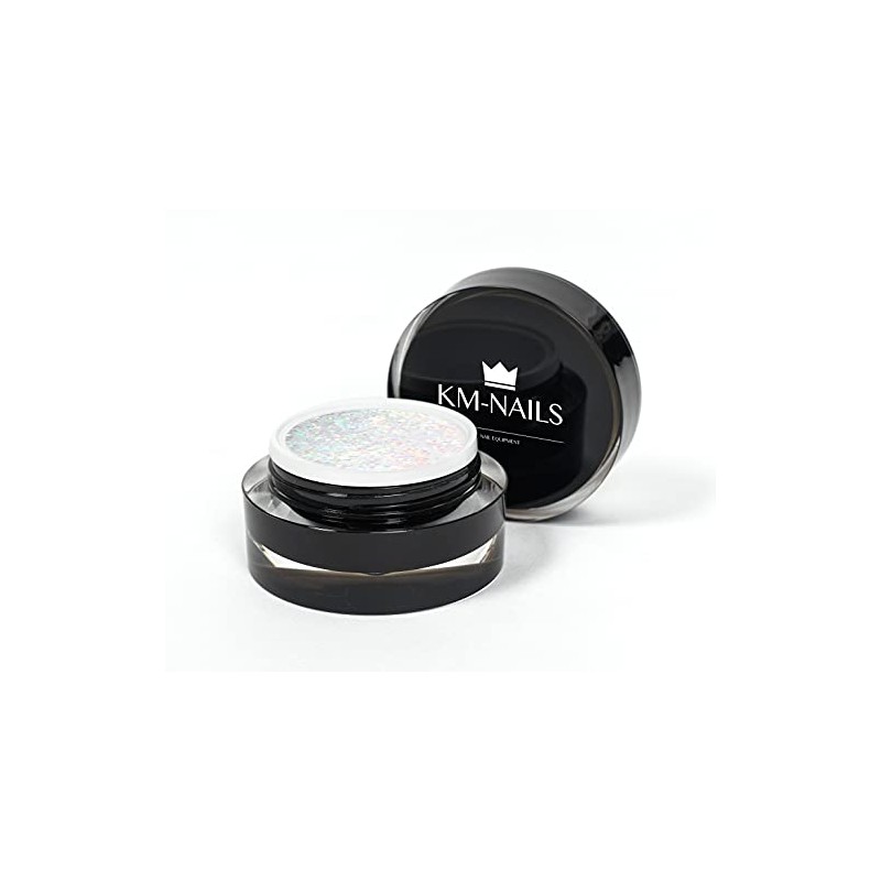 KM-Nails Extremely diamond glitter gel, white iridescent 15 ml, LED and UV hardening