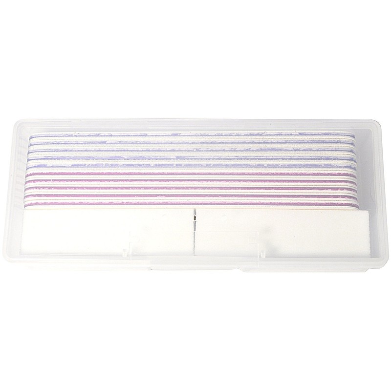 Practical, disinfectable storage box with the most popular files. Also suitable for brushes, instruments etc. This box contains: 5x white straight 100/180 5x white straight 80/80 2x white buffers The box can be disinfected and washed. Size: 19 cm x 7 cm x 4 cm. Whether for commercial use (ideal customer file storage) or for private use
