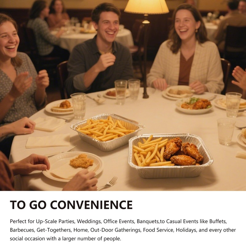 - [Versatile Usage]: Our aluminum foil baking trays are suitable for kitchens, restaurants, family gatherings, buffet parties, barbecues, picnics, camping, festivals, and more. Disposable aluminum foil baking trays are ideal for hot pot, steaming tables, buffet hot dishes, or as serving trays.