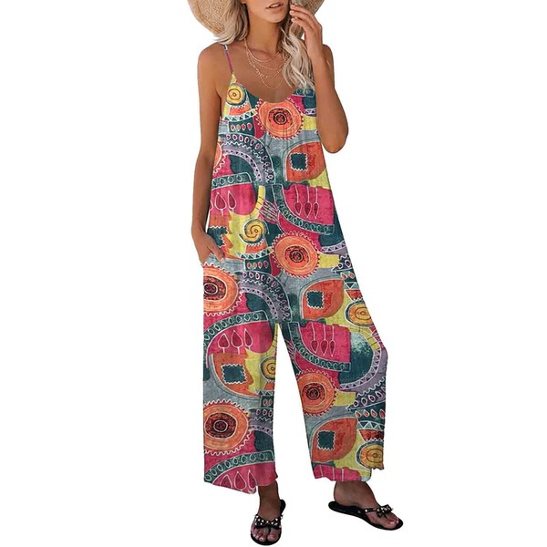 KMAZN Womens Casual Loose Sleeveless Bohemian Beach Jumpsuits Spaghetti Strap Wide Leg Rompers with Pockets LTK 2054 2XL