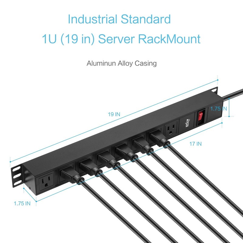 - METAL PDU: Strong metal housing and mounting brackets are great for mounting to server racks, walls, desks, cabinets, and work benches. Dimensions: 19" x 1.75" x 1.75"