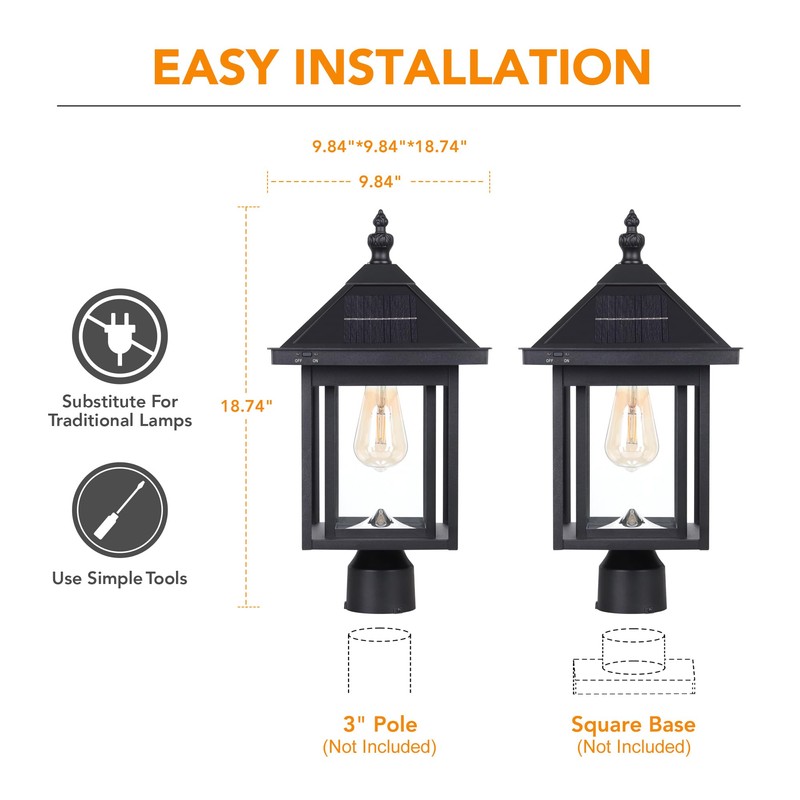 - ❄〖WATERPROOF AND DURABLE〗 The solar lamp post light is UV painted made of aluminum die-casting for durable use and assembled with super quality clear transparent glass, origianlly designed for outdoor use. Furthermore, the solar post light is equipped with replaceable rechargeable batteries, which guarantees their continuously supply optimized performance for years.