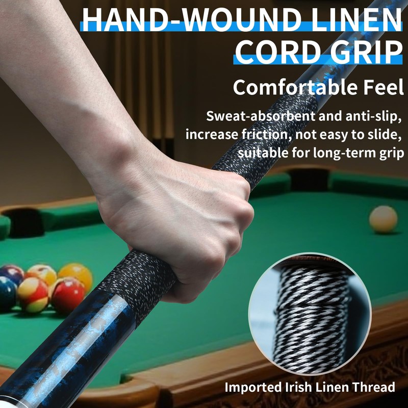 - Comfortable Cues Sticks: Unique hand-painted multi-layer varnish, effectively prevents the wood of the pool cue from being damp and bent, and extends the service life of the shaft. Billiard cue is wrapped with Irish linen thread, which feels comfortable and does not fatigue after long-term use. Anti-slip and sweat-absorbent, reduce deflection, and improve accuracy
