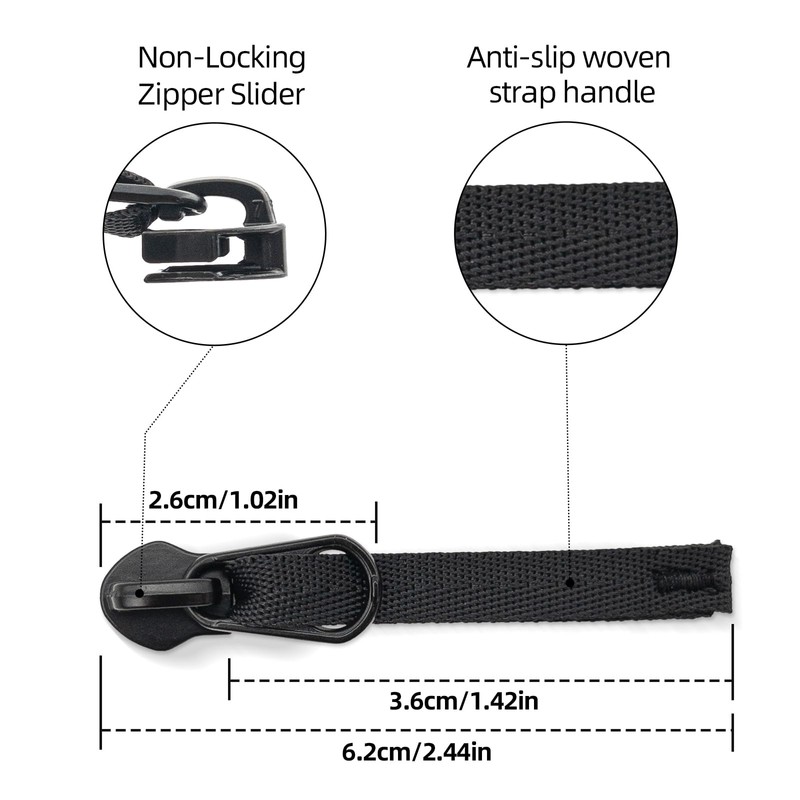 - Zipper Pull Replacement: Our Zipper sliders made of high quality metal, the application of a sophisticated baking paint technique to ensure the color remains vibrant and resistant to peeling over time, scratch-resistant and easy to clean. Non-slip braided tape makes the zipper process easier for you.