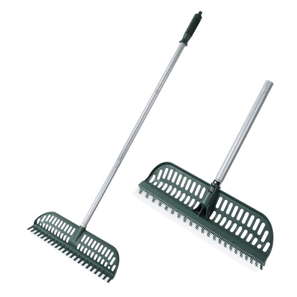 - 【Upgraded Turf Rake for Artificial Grass】 KMSUPERB artificial turf rake features an 18" wide dual-mode head that efficiently removes pet hair, leaves, pine needles, and debris from artificial grass, carpets, and lawns. Ideal for daily yard and indoor cleaning, it's your all-in-one carpet rake and turf sweeper solution.