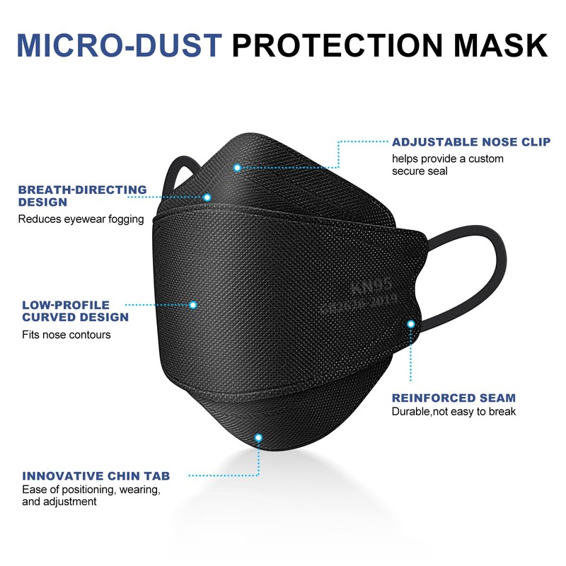 One common issue people face with KN95 masks is finding the right fit. That's why we've equipped our masks with adjustable clips, each offering four different settings. This allows for a custom fit for every face shape, greatly enhancing comfort and reducing the pressure typically caused by ear loops.