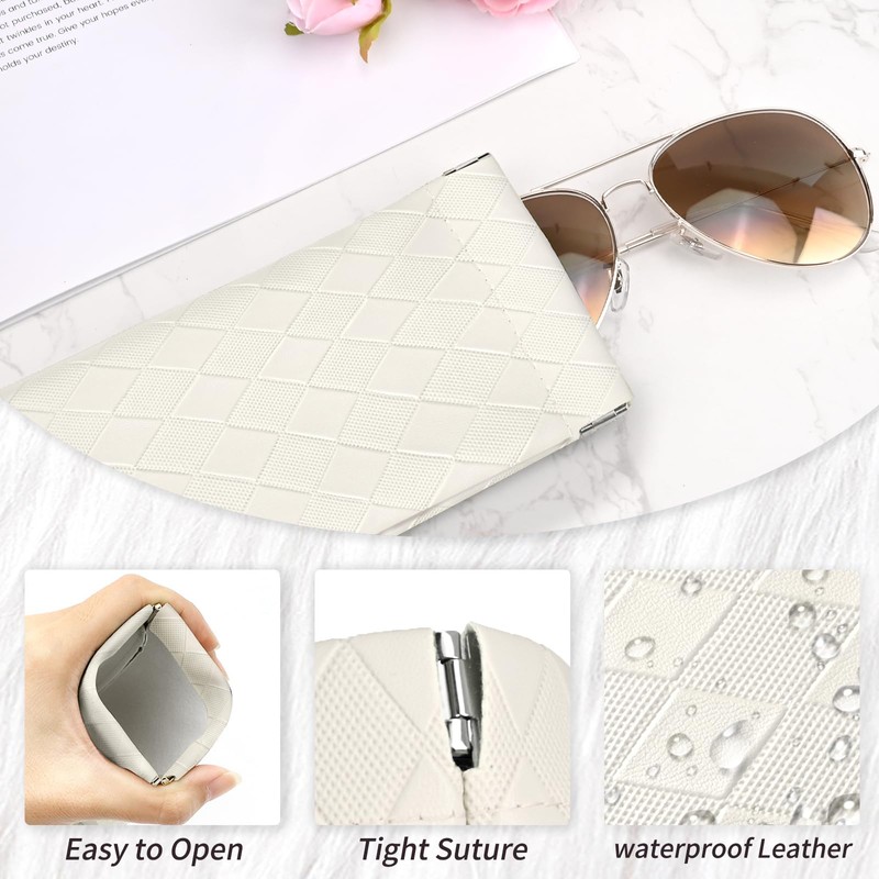 - 【Easy Use】: The sunglasses case features a metal spring top, the sunglasses case can be easily squeezed open and securely closed to prevent glasses from falling out and getting lost or damaged.Each eyeglass bag is equipped with a high-quality microfiber eyeglass cloth.