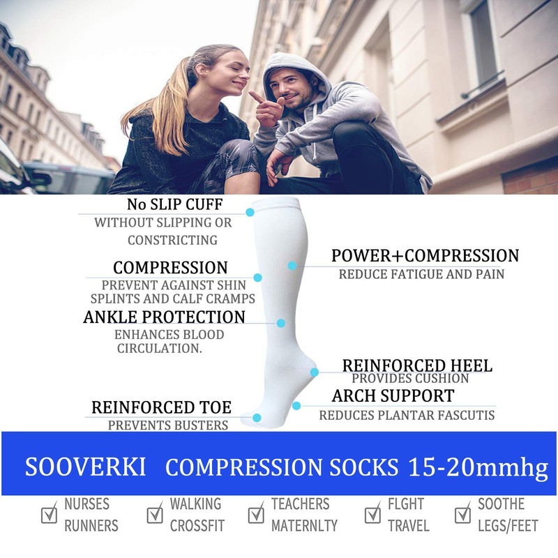 - PREMIUM QUALITY CIRCULATION SOCKS- You are getting an amazing offer to keep your feet stay with optimal compression all the time.Without compromising quality or comfort,SOOVERKI compression socks are changing the landscape in the field of compression socks by matching quality and pricing.Our socks provide better fabric strength while retaining softness, flexibility and enhanced air permeability highly suited for compression process. You get a multicolor combination for your choice.