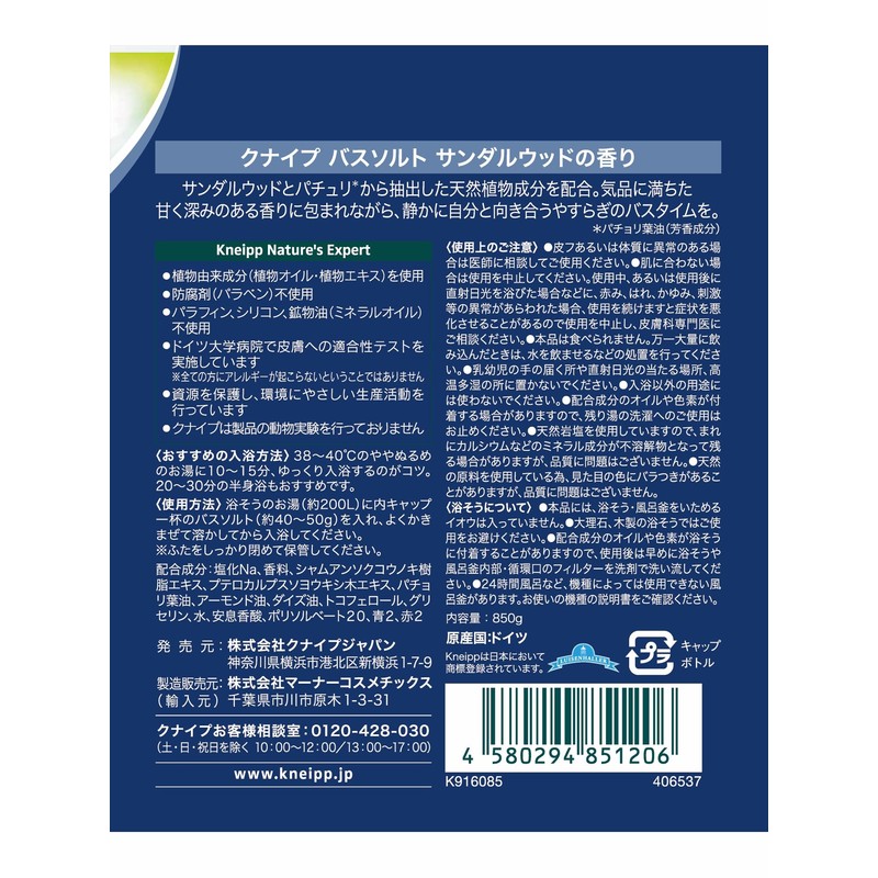 Kneipp Bath Salt, Sandalwood Scent, 850 Grams (x1)
