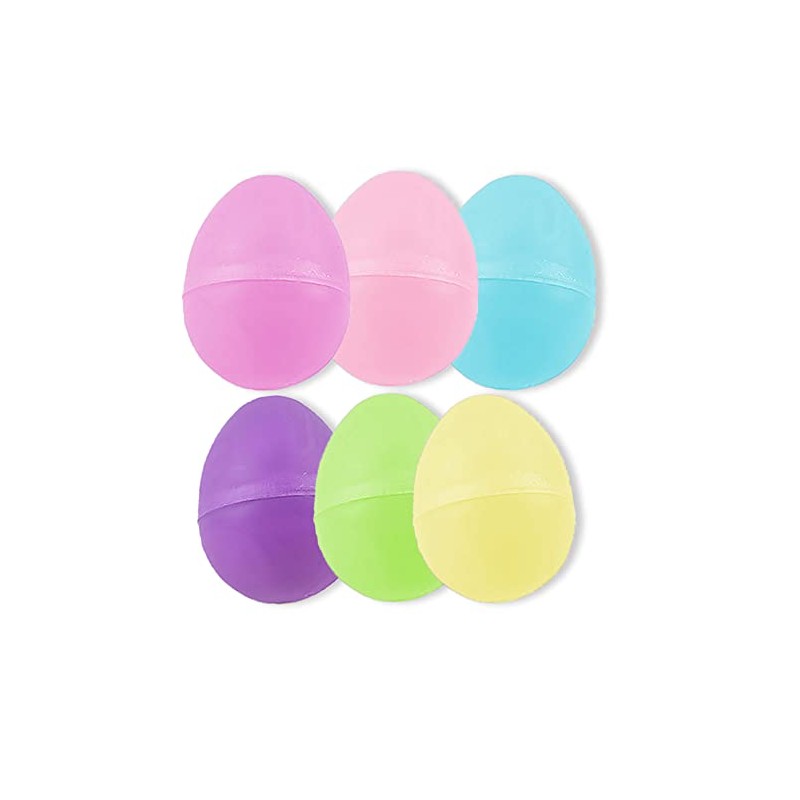 - Each purchase is for a 6 piece set of eggs that are in an assortment of colors including pink, purple, blue and green; made with a smooth matte finish.
