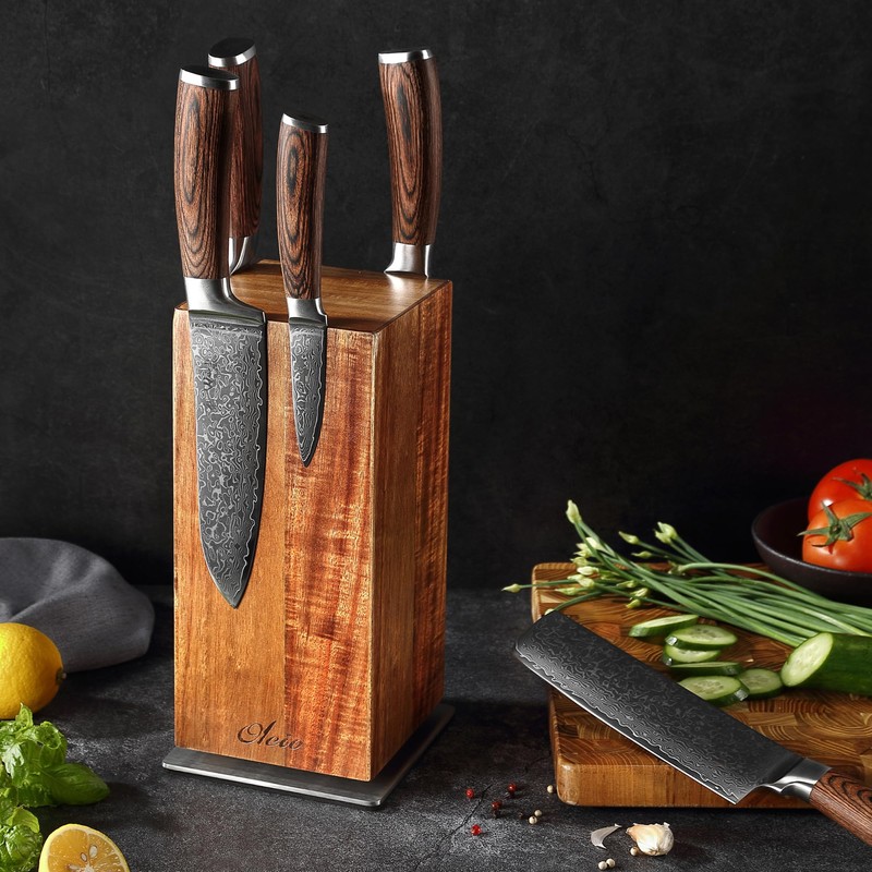 Knife block rotating 360 degrees magnetic without knife acacia wood – magnetic knife holder universal without wood – noble wooden block acacia – magnetic rotating knife holder block