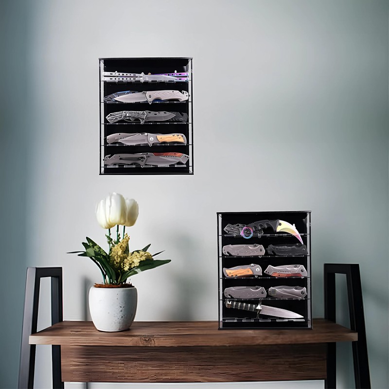 - 【Simple and classic structure】Simple and generous bracket is very suitable for storing knives, the bracket is very strong, transparent, when displaying your collection, let your knife become the focus of attention to complete your office or home decoration;