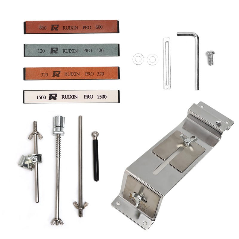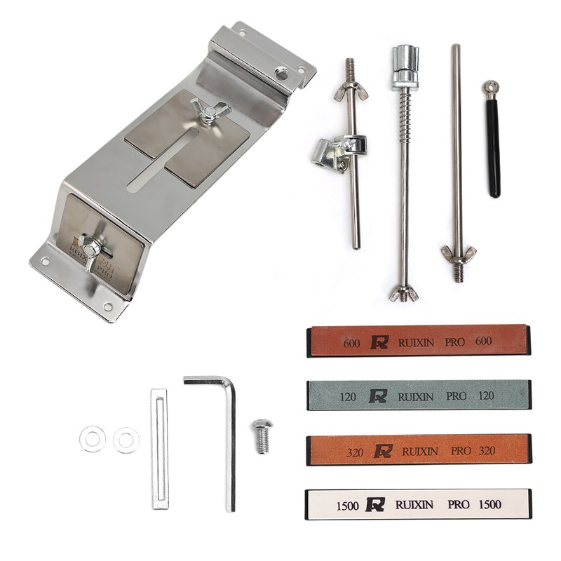 1、The professional sharpening equipment is developed for sharpening, including 4 grinding stones with 120 mesh / 320 mesh / 600 mesh / 1500 mesh. 2、The best combination of grinding stone and angle adjustment function can realize the entire cycle operation of sharpening of knives and other knife‑edged objects. 3、The sharpening system is easy to assemble and disassemble, no special operation and special skills are required. 4、Easy to use and easy to assemble, it is a good helper for the family kitchen and provides many conveniences for your daily life. 5、This sharpener can be installed with 150 x 20 x 5mm various grinding stones (the base has been glued).