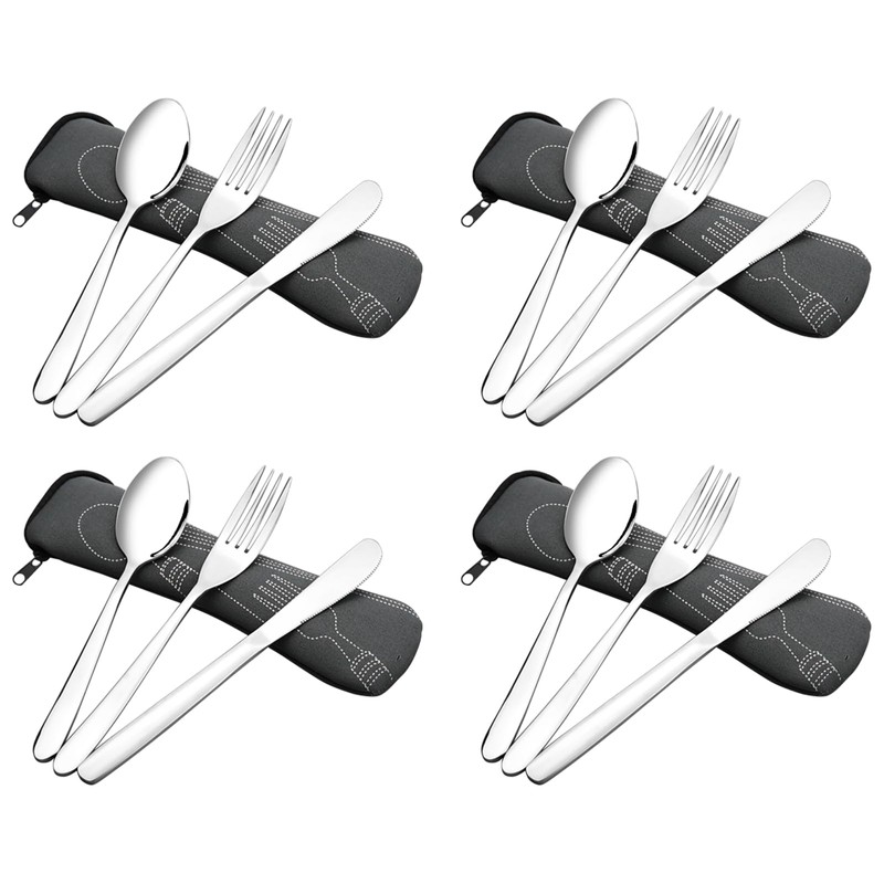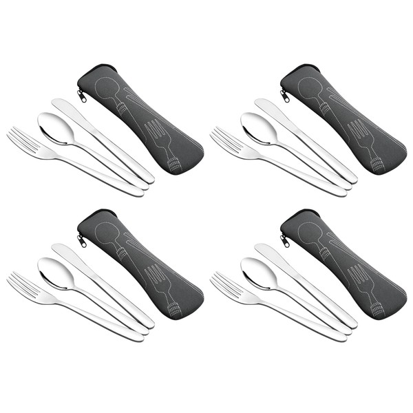 Knifefish Set of 4 Travel Cutlery Flatware Set with Case, Reusable Travel Silverware Set, Portable Travel Utensils Set