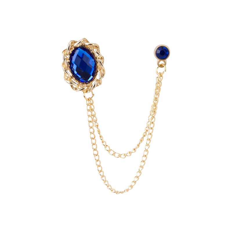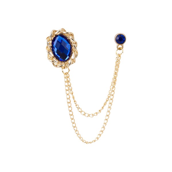 Knighthood - Broche para hombre, color azul real, con cadena dorada
