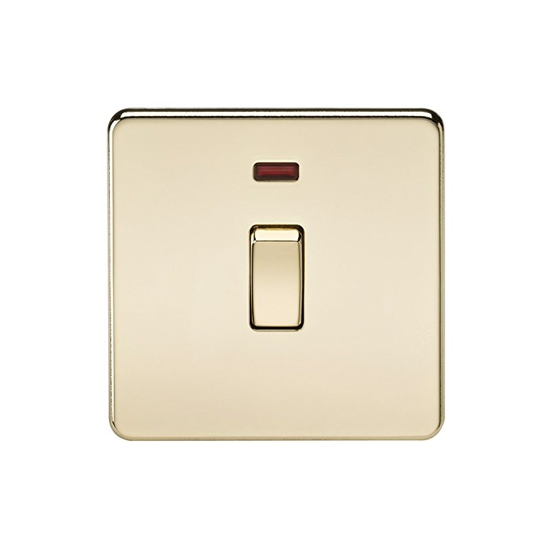 Knightsbridge SF8341NPB Screwless 20 A 1-Gang DP Switch, Polished Brass with Neon